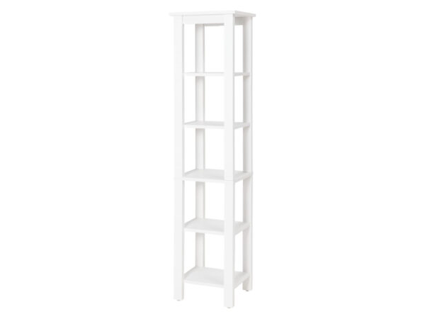Productbeschrijving In stijlvol landhuisdesign in hoogwaardige echt hout-look Krasvast en onderhoudsvriendelijk door melamineharscoating Met 5 open vakken voor veel opbergruimte Vakken geschikt voor standaard opbergdozen Vloerbeschermende, in hoogte verstelbare voeten Materiaal Spaanplaat met melamine coating Voeten: MDF noppen Opgemerkt ABS en papierrand Afmetingen ca. 40 x 35 x 170 cm (l x b x h) Gewicht ca. 17,1 kg (EAN: 4054599096315)
